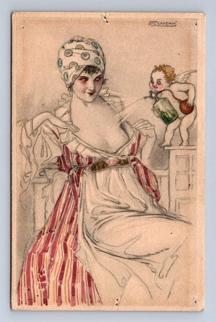 It features an elegant lady in a blue dress holding a perfume vinaigrette! The artist, William Powell Frith (1819-1909), was an English painter renowned for his vivid representations of daily life in the Victorian era. One of his early pieces, Ramsgate Sands (1854) depicting Victorian life, was purchased by Queen Victoria herself. His artwork appears in museums around the world.